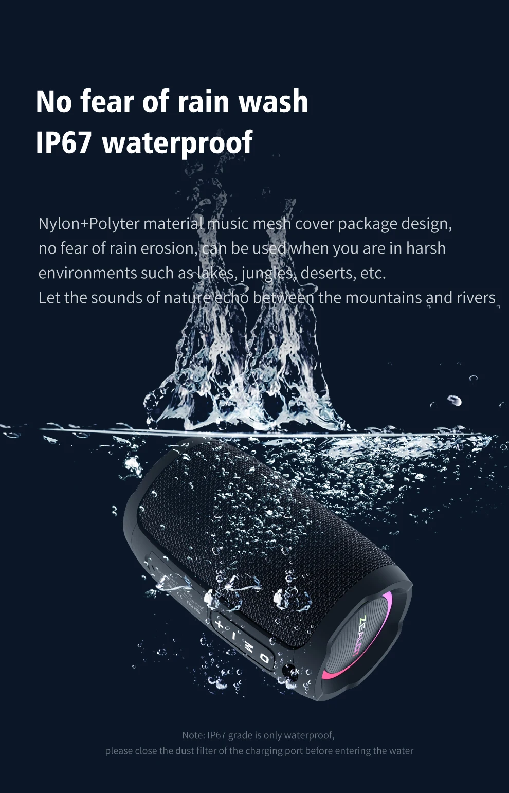 • IPX7 Waterproof :This speaker is waterproof, making it perfect for outdoor activities or accidental spills.